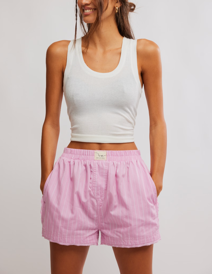 Our fav laid-back option in the perfect print. An absolute staple from We The Free, these classic striped boxer shorts are featured in a comfy cotton fabrication with an elastic waistband and logo tag detail.