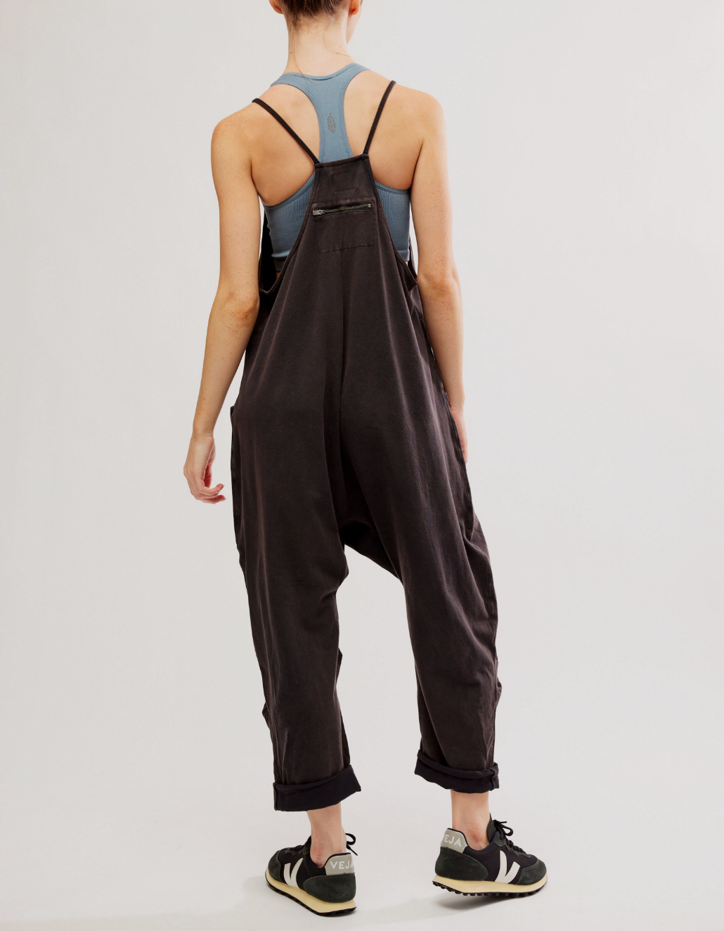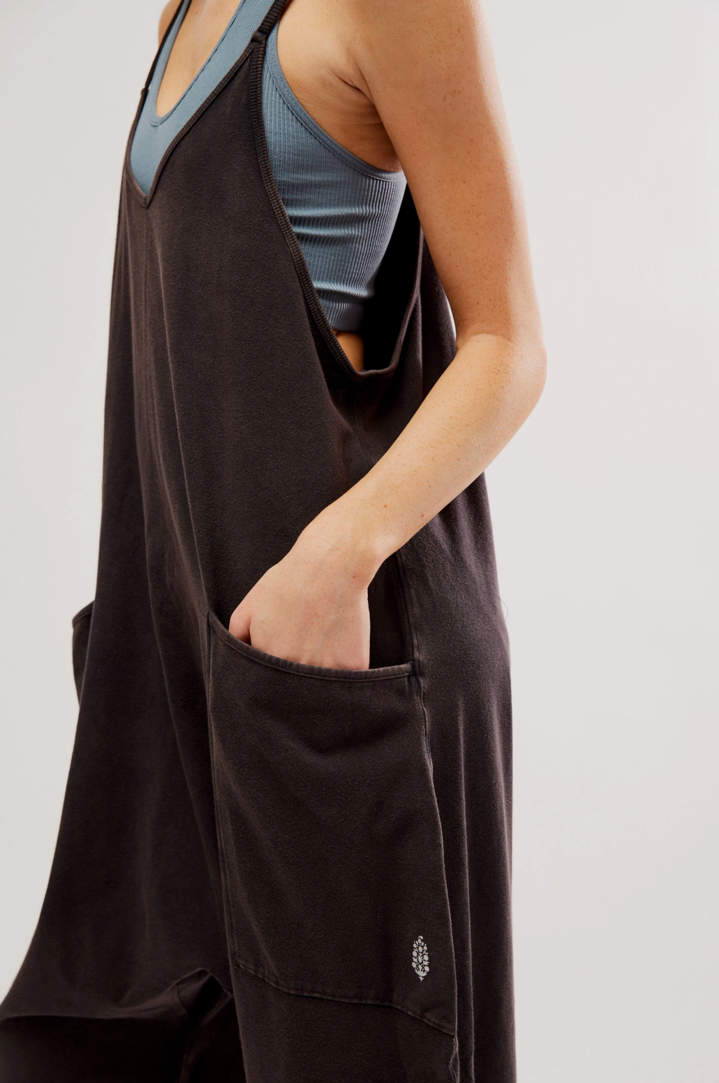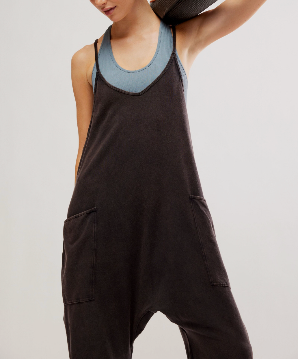 Features: Racerback silhouette, oversized patch pockets, dropped armholes