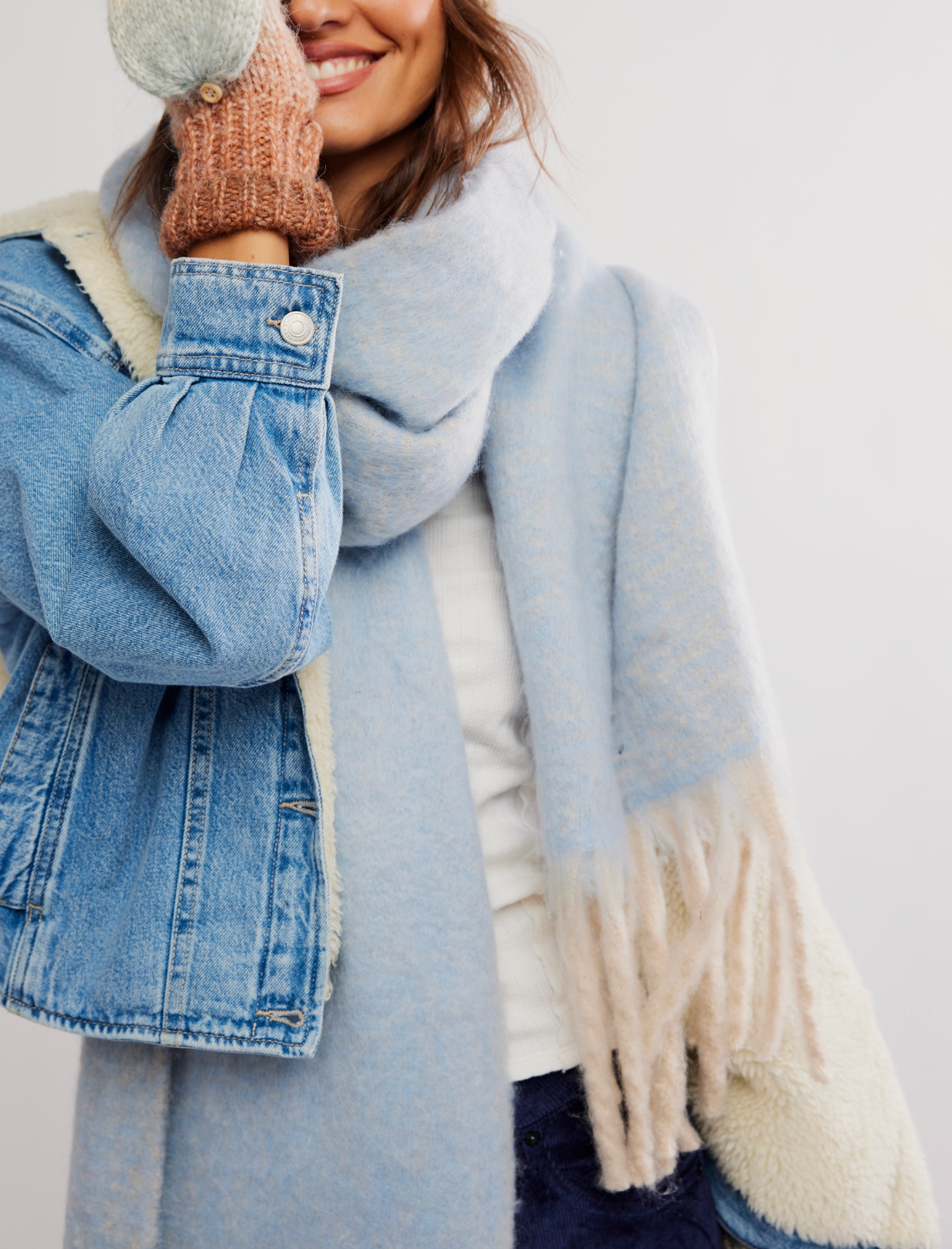 So cute and cozy, this timeless blanket scarf is sure to be an essential piece in your winter wardrobe rotation featured in a super soft knit fabrication with defined fringe at trim and FP embroidered logo at bottom for the sweetest finishing touch.
