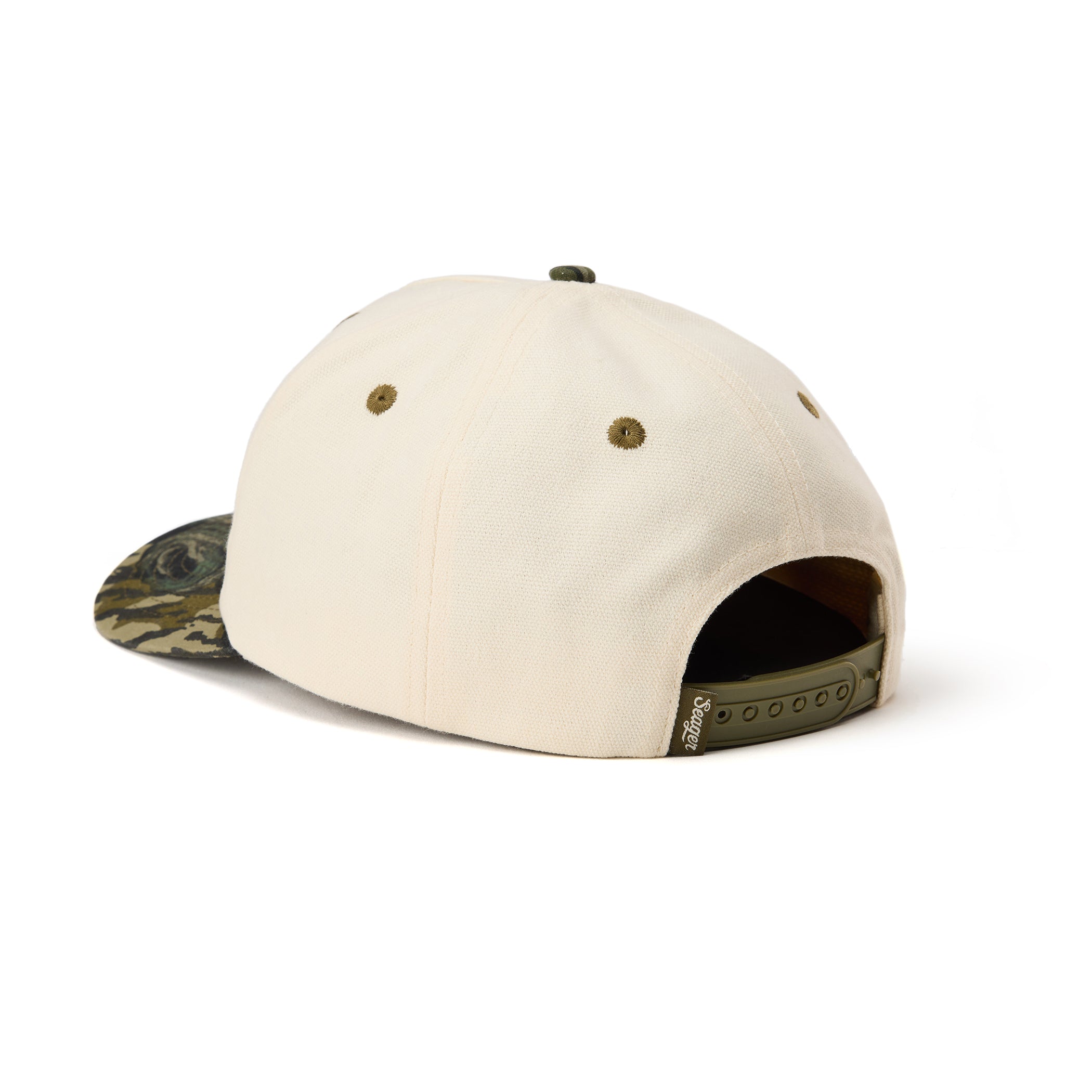 A nod to mornings in the blind and the company you keep. This high-profile, structured snapback pairs a sturdy cotton build with a Mossy Oak camo bill and detailed embroidery. Built to last, made to wear wherever the day takes you.