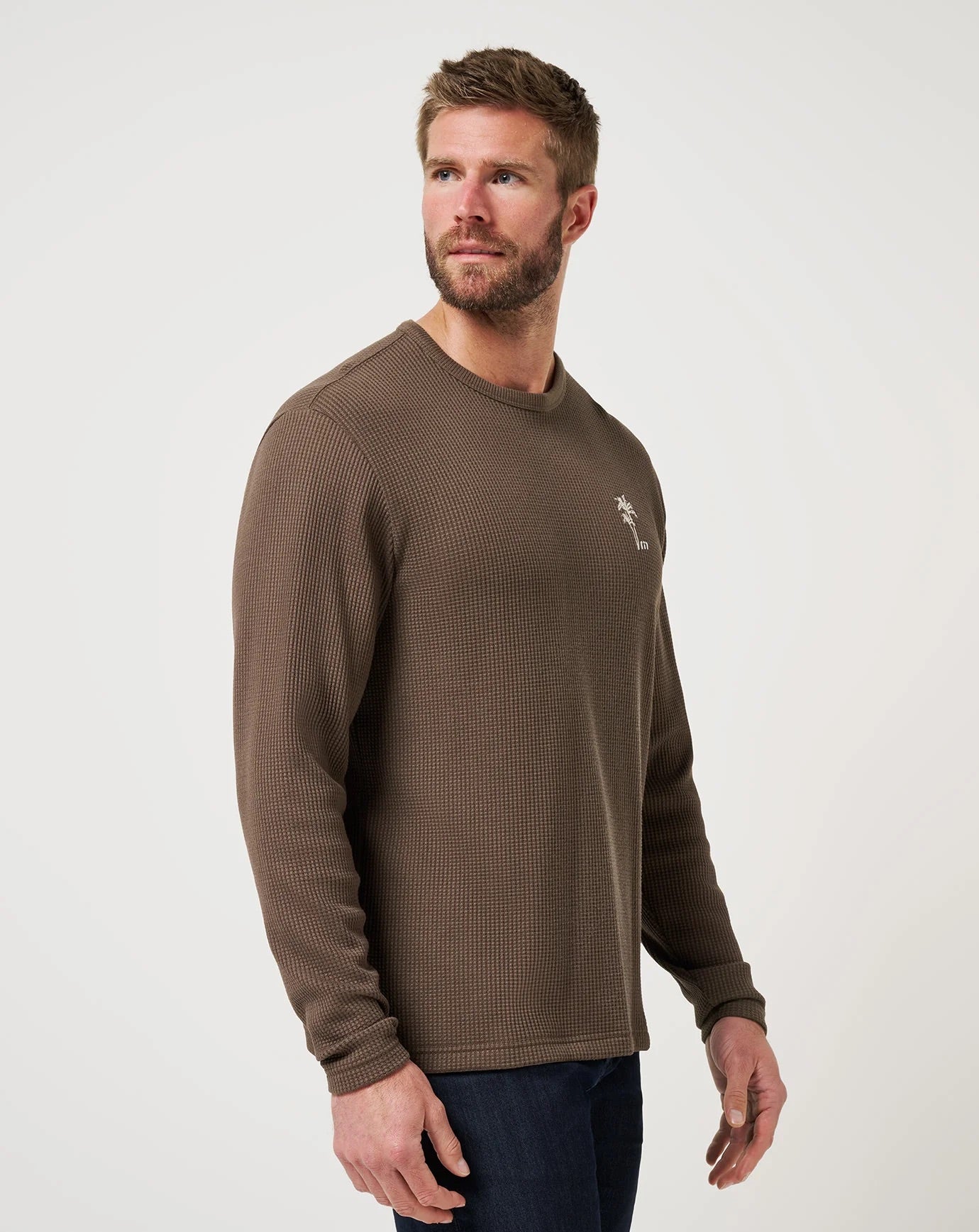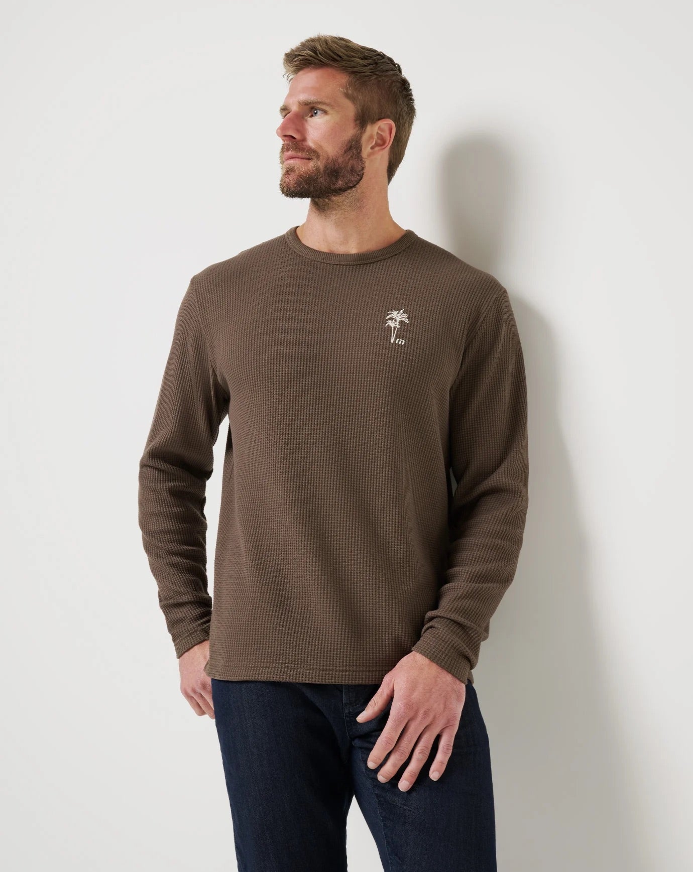 Waffle texture. Signature ease. SOUVENIR STAND is an elevated crewneck with seasonal chest embroidery and a weight that transitions effortlessly between seasons. The kind of staple you throw in your weekend bag and end up wearing five days in a row.