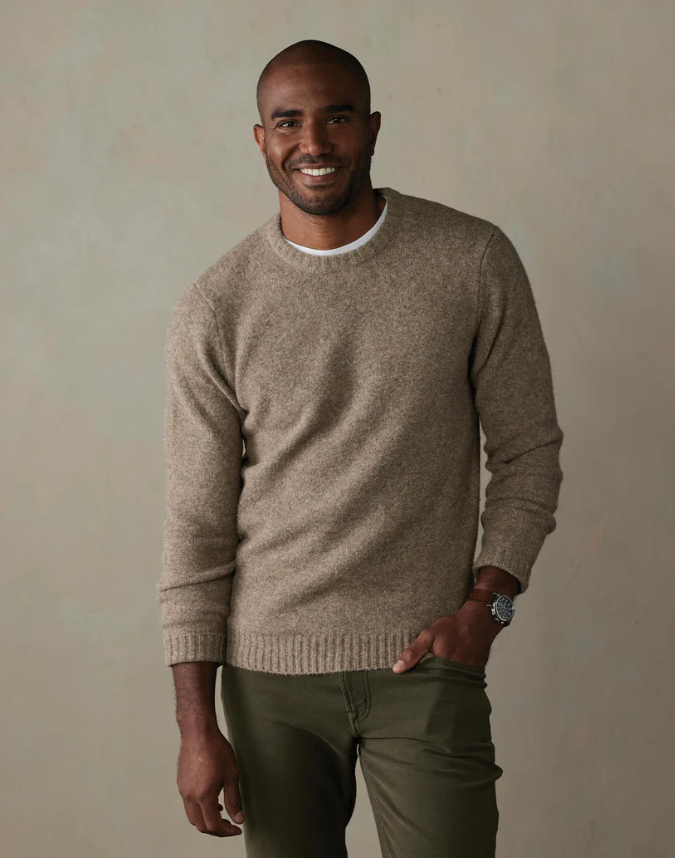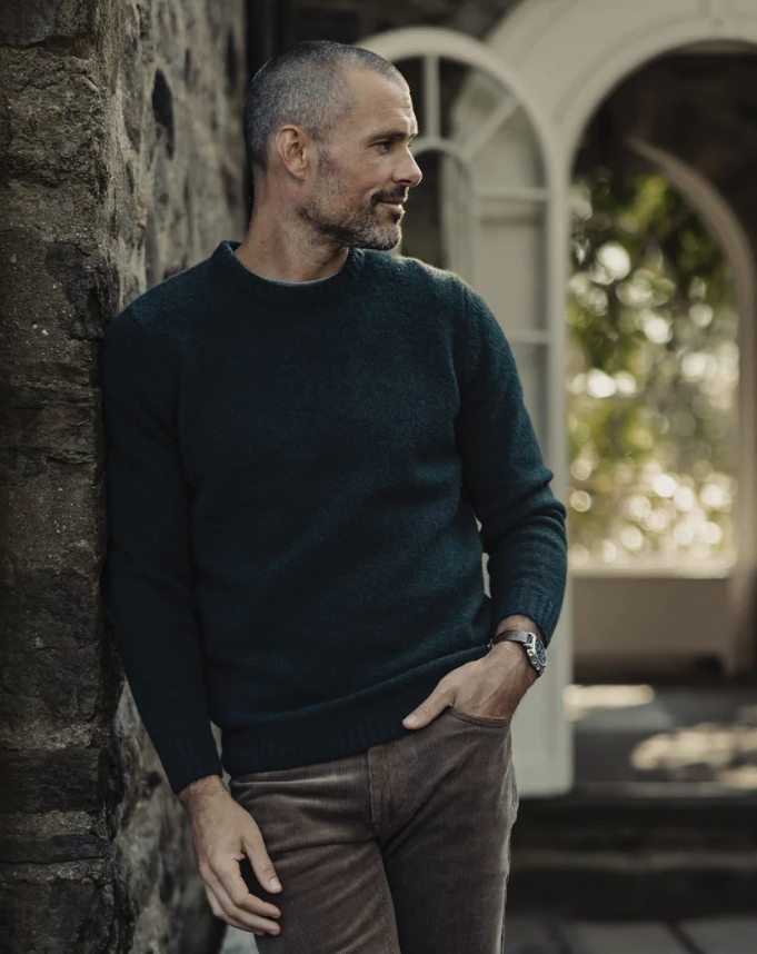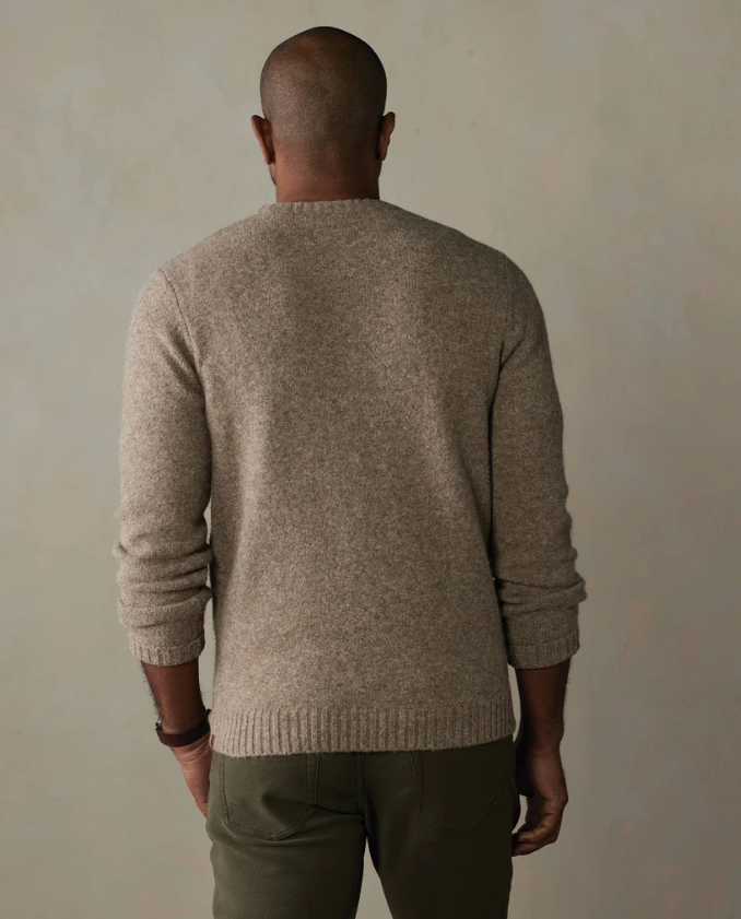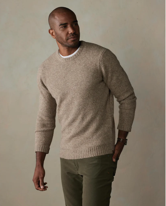 Our Homebound Crewneck Sweater blends classic style with modern sustainability. Made from a fabric blend featuring 50% recycled polyester, it offers warmth, softness, and a slight stretch for comfort. With a true-to-size fit, this sweater is perfect for layering. Its rib detailing at the neck, sleeve cuffs, and bottom band incorporate timeless design elements. The chunky knit, classic fit, and crewneck styling draws inspiration from traditional Nordic heritage sweaters.